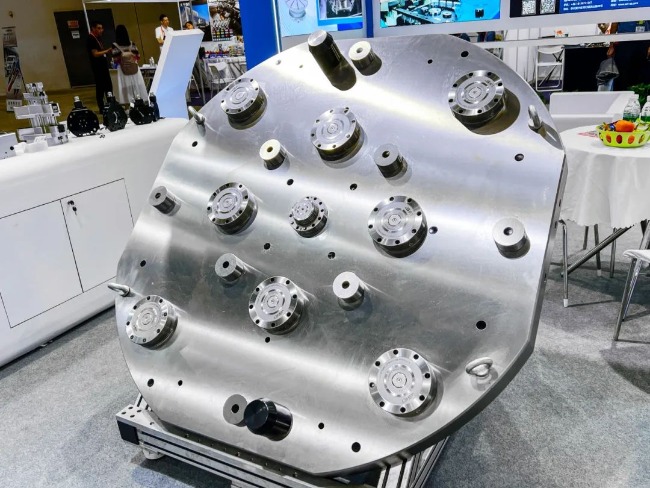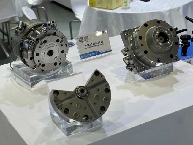 我们的工作人员热情地向他们介绍我们自主研发的零点定位系统,夹持系统,抓取系统等整体应用解决方案,
