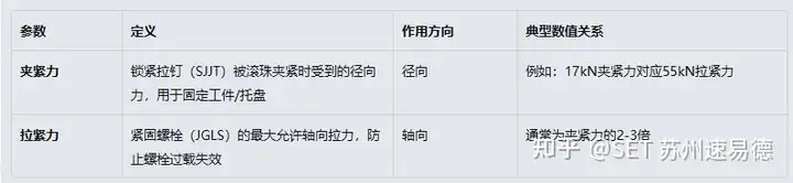 ● 拉紧力需 >夹紧力×1.5,确保螺栓不因夹紧动作过载。