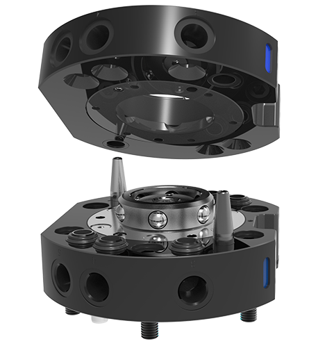 重复定位精度<±0.015mm,可搬运重量100kg,锁紧力12000N,可选配各种电源、液体、气体模块,有特殊保险机构防止意外断气风险。