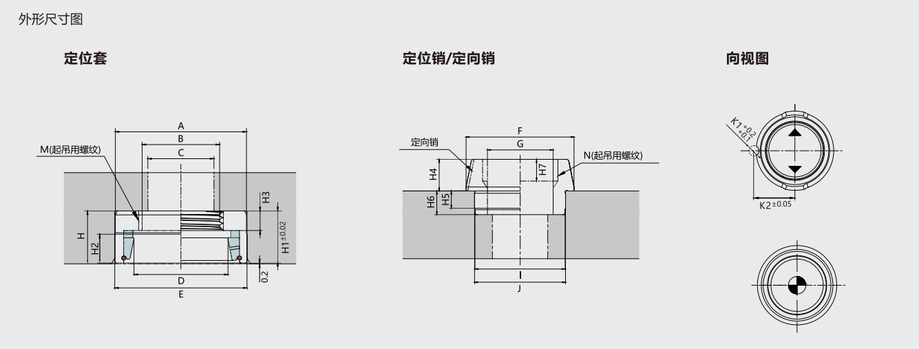 - 手动定位环由定位拉钉(SDJT-PD)、定向拉钉(SDJT-PC)、定位套(SDJT)三部分组成,手动定位、锁紧、解锁。