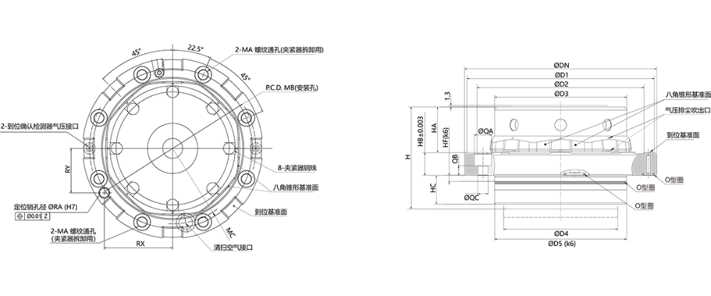 单颗定位器夹紧力8kN,气压0.6MPa时;