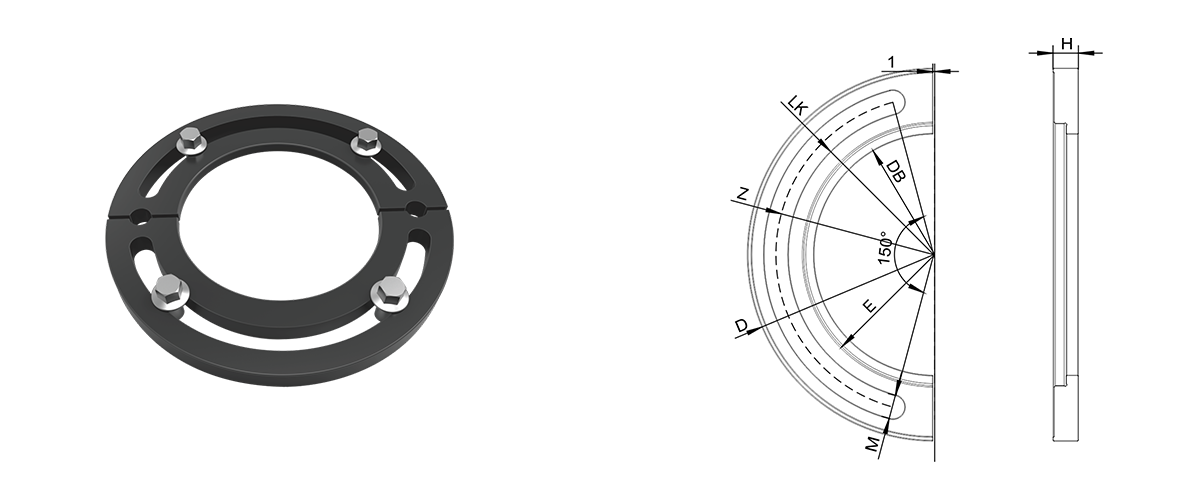 固定法兰用于将台面式(LQTMS)安装于机床工作台上;