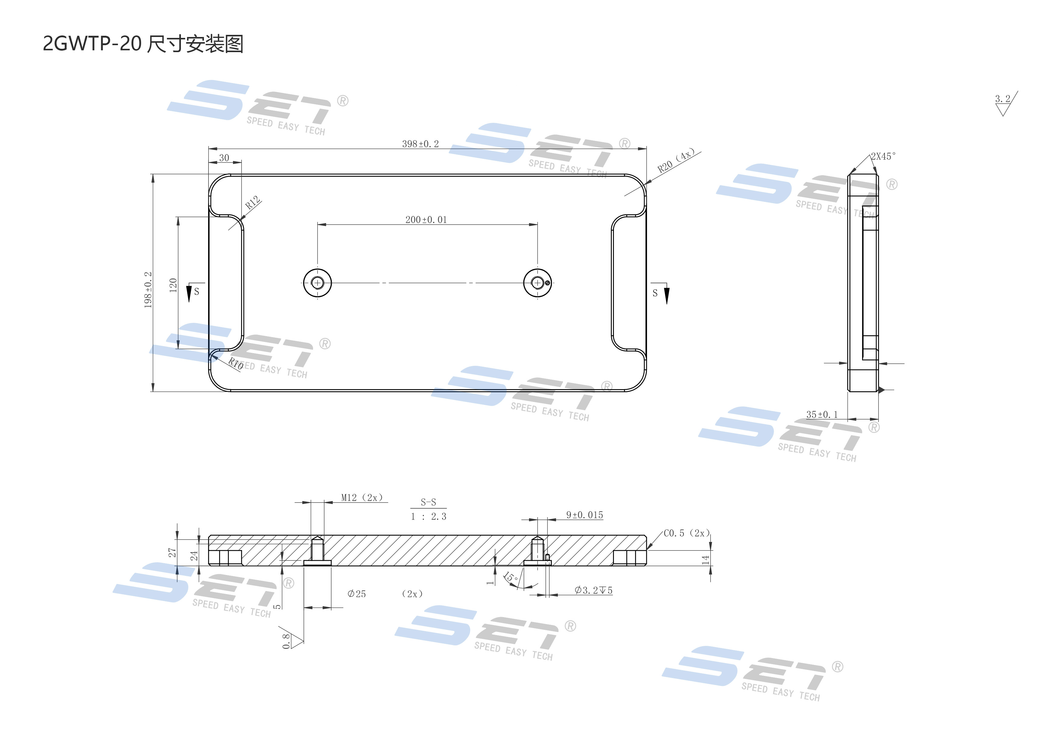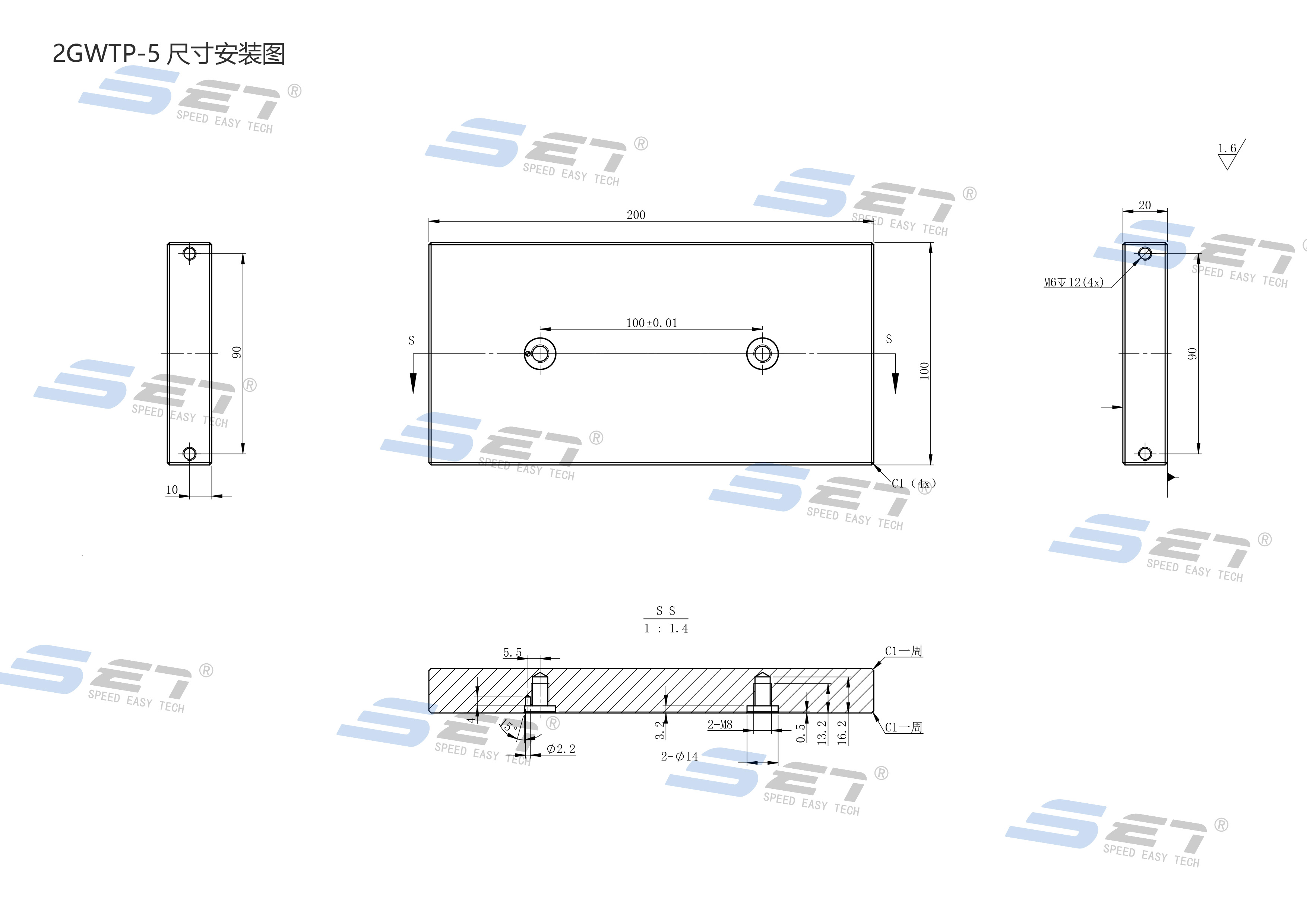 长200mm,宽100mm,板厚20mm