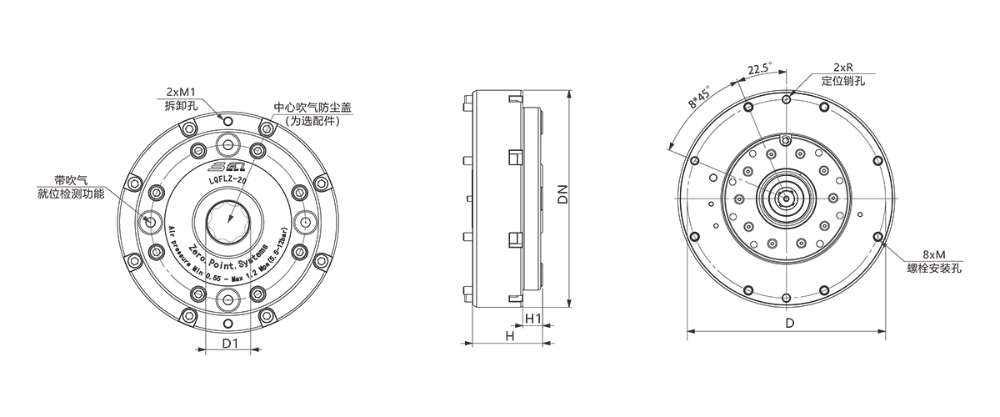 解锁方式 | 夹紧力(kN) | 拉紧力(kN) | 吹气 | 重量(kg) |