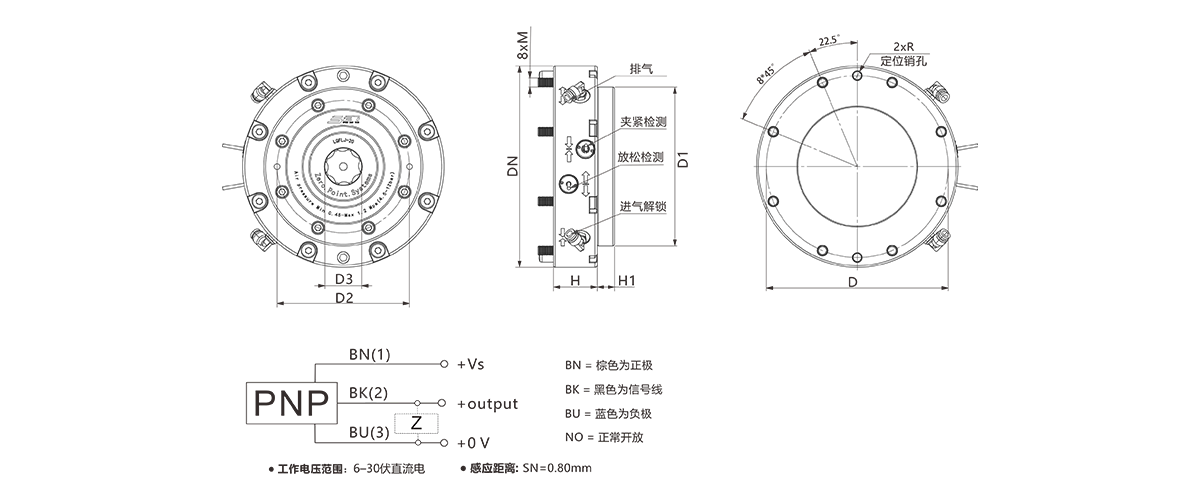 带夹紧,放松检测接口,输出PNP信号;