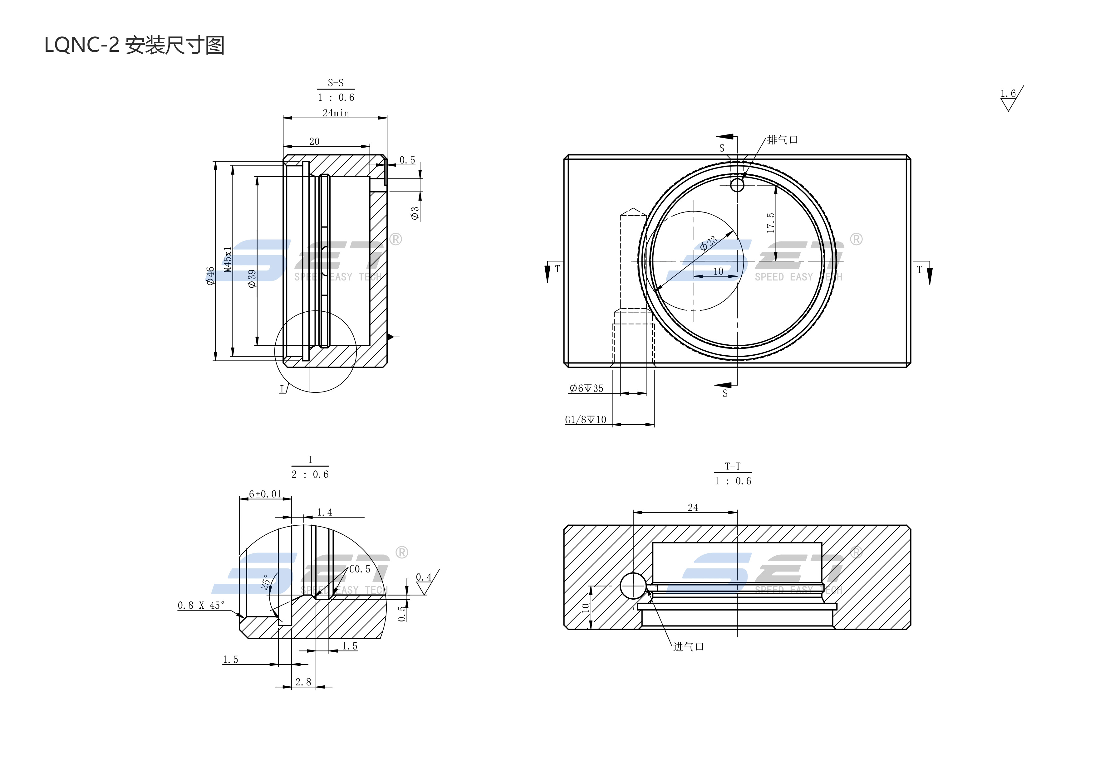 螺纹内藏式安装型零点定位器直径45mm,总厚20mm,重0.15kg,