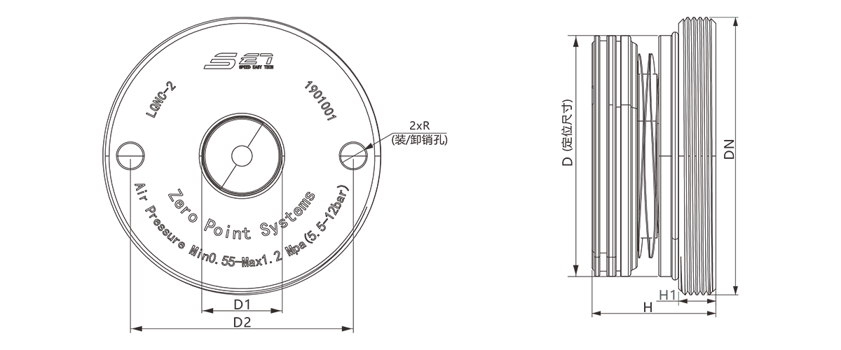 - 重复定位精度<0.005mm,单台定位器夹紧力1.25kN,拉紧力5kN。
